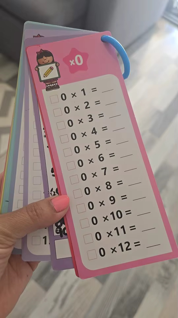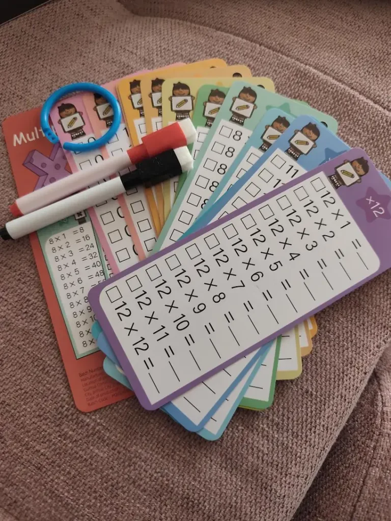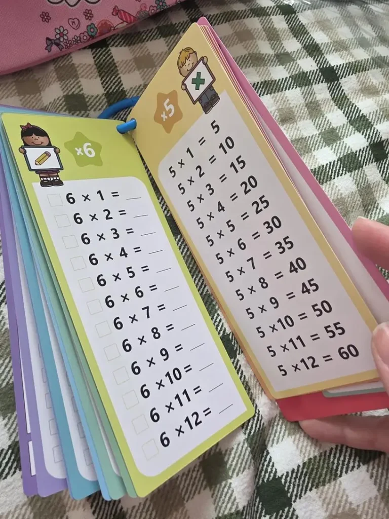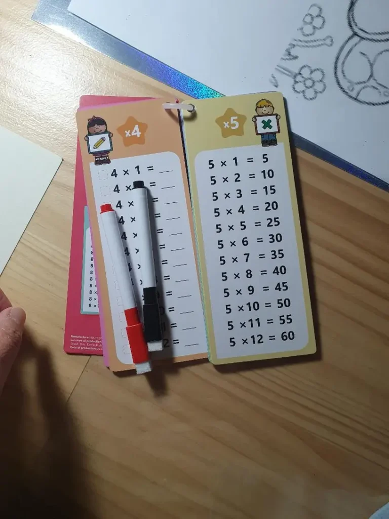 Moja córka je uwielbia; bardzo jej się podoba, gdy może ćwiczyć tabelę mnożenia! Jedna strona jest przeznaczona do nauki, a druga do ćwiczeń. Gorąco je polecam.